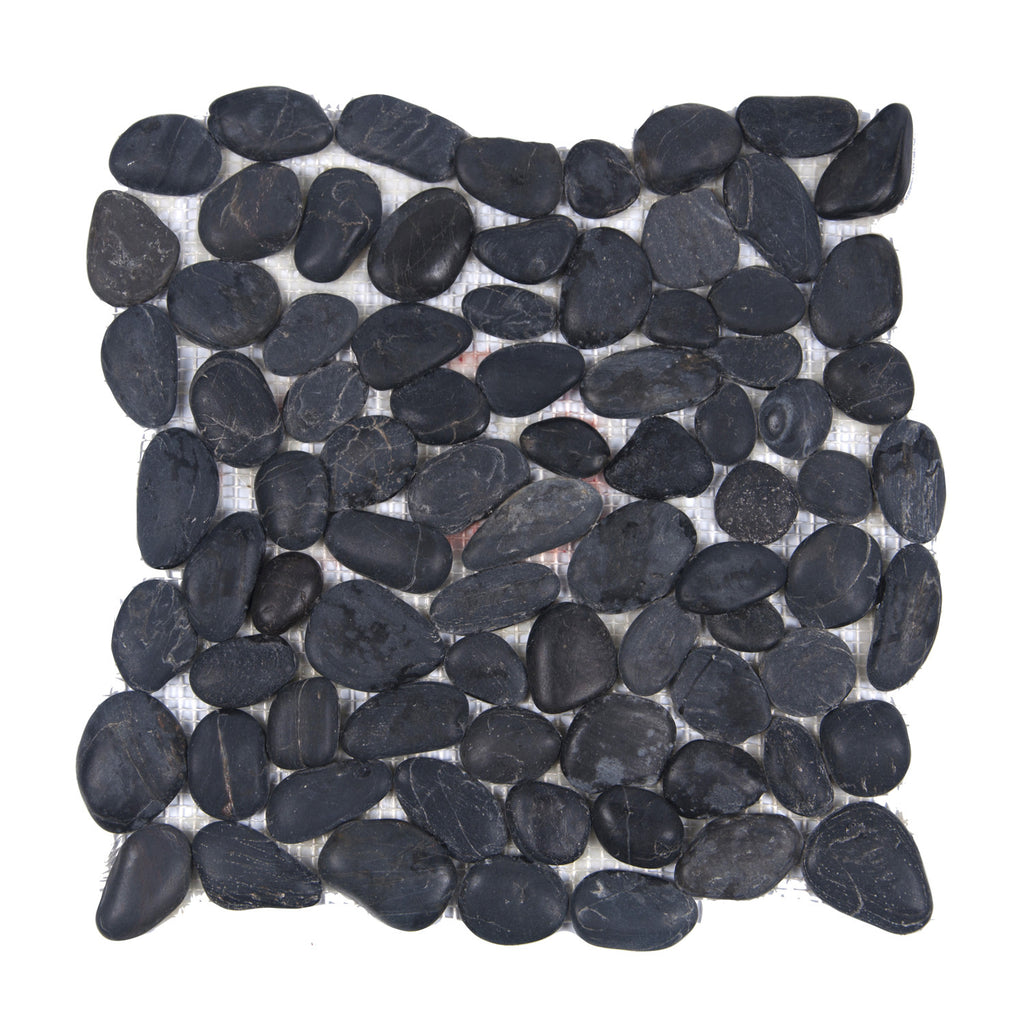 Black Pebble: Black Pebble Stone Mosaic, 12"x12"x3/8"