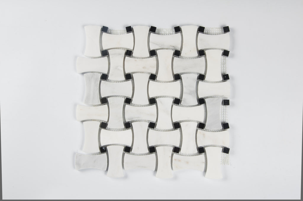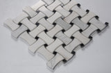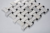 Bone Basketweave: Oriental White + China Black Polished Basketweave Mosaic, 12"x12"x3/8"